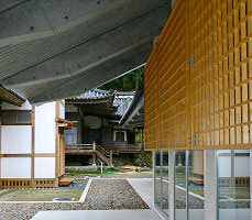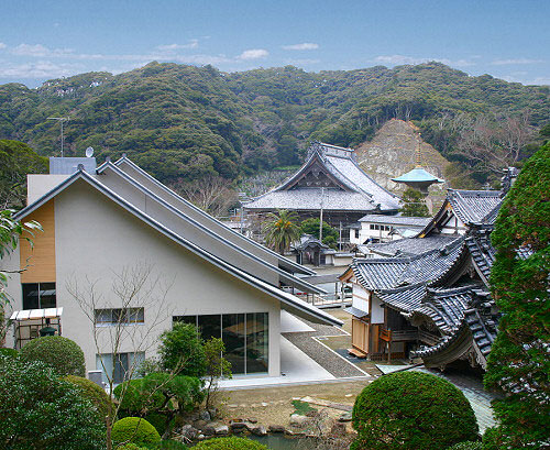 山内ご案内 guide TOP 山内ご案内 布教殿堂 布教殿堂 布教殿堂 平成18年秋に竣工致しました。寺務所、研修室等があります。 東正面を望む 2階階段よりロビーを望む 屋根軒裏と木製格子ルーバー 2階研修室 南側高台から外観と祖師堂の遠景を望む 誕生寺略図 本堂 祖師堂 布教殿堂 本師殿宝塔 宝物館 客殿 仁王門、総門、誕生堂 蓮華ヶ淵
