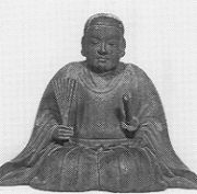 誕生寺にお祀りされる日蓮聖人のご幼像は、小型の座像で、袍に袴を着して右手に中啓(ちゅうけい・扇の一種)を持ち帯刀しています。現在は、お像の上から更に別製の衣を着せています。お顔の印象は、銅像よりも少し年長に見受けられます。