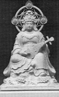 弁才天は、略して弁天ともいい、大黒天や寿老人・恵比寿などと共に七福神の一つに数えられ、お正月の縁起物の宝船に乗った七福神の絵などにも見られます。その姿は楽器の琵琶を抱えた天女に描かれていますから、中国、或は日本の神様の様に思えますが、本来はサラスヴァティーというインドの女神で、河の神または農業神なのです。そして学問・智恵・弁舌・音楽などを司る神となり、仏教に採り入れられました。吉祥天と共に「金光明最勝王経」(きんこうみょうさいしょうおうきょう)などに説かれています。