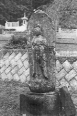 祖師堂左手にある歴代上人墓地の一画に、石仏が一体あります。右手は手のひらを開いて上を指し、左手も手のひらを開いて下を指すという、施無畏(せむい)・与願印(よがんいん)を結んだ釈尊の立像です。像の本体を光背、蓮華座と共に1つの石材から刻んだ舟形浮彫りで、像高は1メートル12センチ、蓮華座の高さ23センチ、光背の高さ1メートル38センチあり、高さ37センチの別材の台石の上に安置されます。このような石仏を造立することは、江戸時代に盛んに行なわれました。
