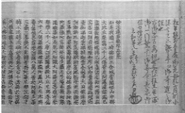 誕生寺には幾本もの法華経が伝えられていますが、その一つに十七世貫首不軽院日税上人によって寄進の銘文が記された木版刷の八巻本があります。銘文を見ると、先ず「松平筑前守殿御老母様、房州小湊高光山誕生寺え御寄進の御経なり」と寄進者と誕生寺へ寄進されたお経であることが明記され、続いて寄進の趣旨が「右御志は、現世安穏後生善処、御一門繁栄、御寿命長遠、御信力増進のためなり」とあり、元和8年(1622)孟(初)秋吉辰の日付が記されます。